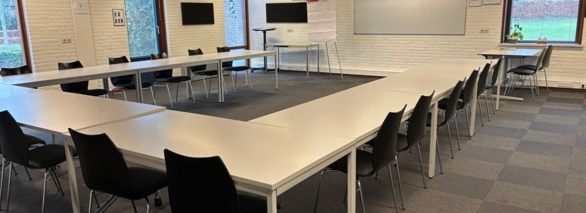 De ruime cursusruimte van d’n Intheek is de ideale plek voor bijeenkomsten, een workshop, presentaties en vergaderingen. Met comfortabele zitplaatsen – de tafels kunnen in een andere positie geplaatst worden indien gewenst – en een prettige en open sfeer voelt iedereen zich hier direct op zijn gemak.